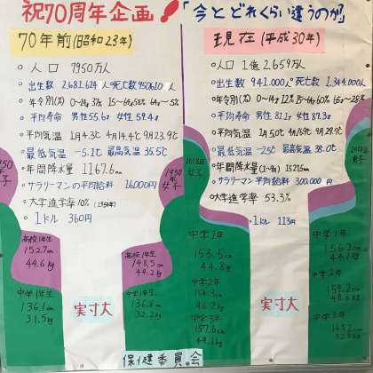 祝創立70周年企画「今どれぐらい違うの?」身長や体重、人口、気温など、70年前と比較してみました。