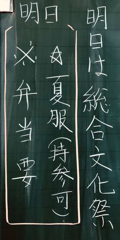 また、明日は給食がありませんので、お弁当のご準備をお願いいたします。
