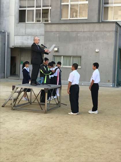 本日の全校朝礼において、美術および野球部に対する表彰がありました。