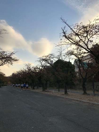 造幣局と大川の間の歩道が、良いランニングコースになっています。