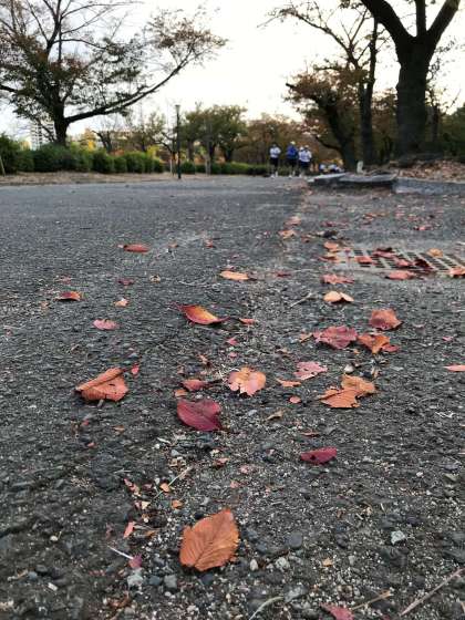 トレーニング中はさすがに紅葉する桜の風情を楽しみながら、というわけにはいかないようですが。