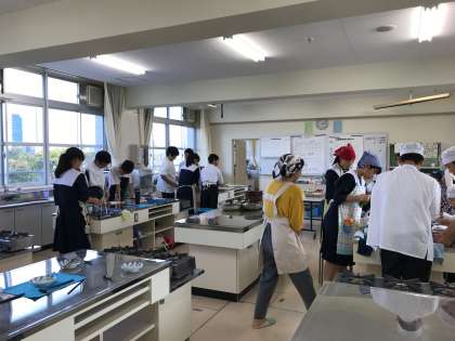 本日5・6時間目、2年生家庭科の調理実習の様子です。