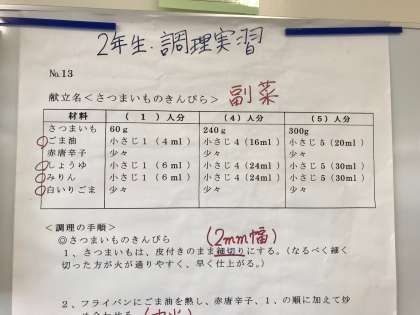 本校元気アップボランティアの皆さまにもご支援いただきながら、「さつまいものきんぴら」を作りました。