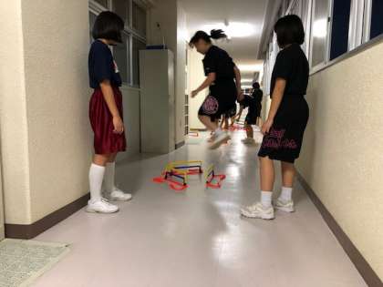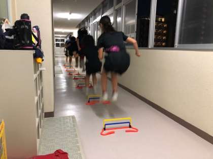 体育館の割り当てのない日は廊下でトレーニングをしたり、外のリングでシューティングをしたりしています。