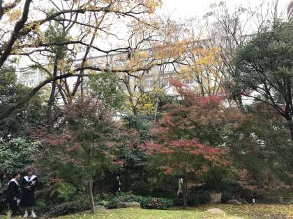 教室からよく見える、旧桜宮公会堂の庭園です。