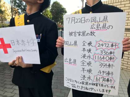頂きました募金は「西日本豪雨災害」への義援金として、日本赤十字社に送られます。