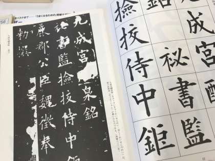 欧陽詢「九成宮醴泉銘」。楷書の手本として有名な拓本を掲載している本もありました。