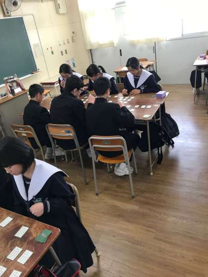 1年生の本日6時間目には、今月末に行う「小倉百人一首」のカルタ大会の練習をしました。