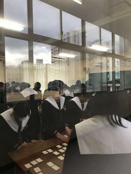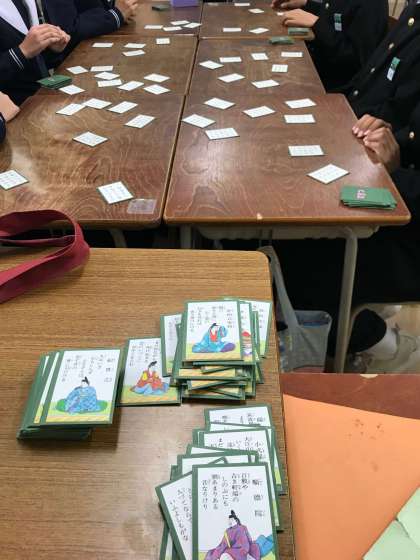 本日6時間目、1年生は小倉百人一首カルタ取りの練習でした。