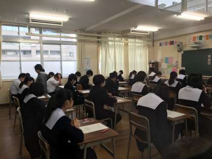 写真は、1時間目、理科のテストを待つ様子です。