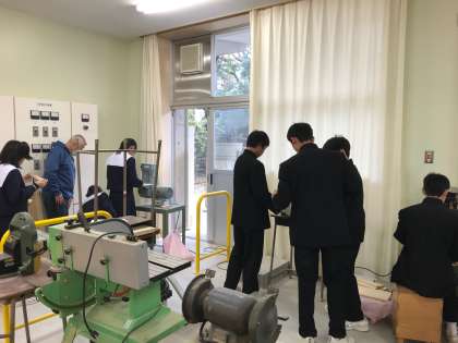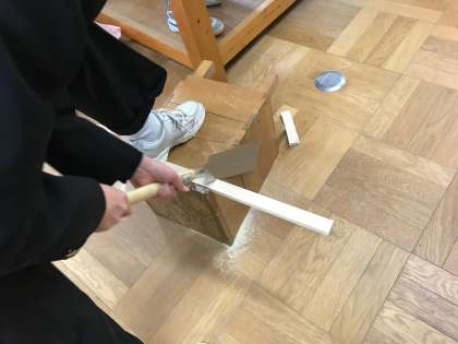 ノコギリなどの工具を使い、みんな真剣に作業しています。