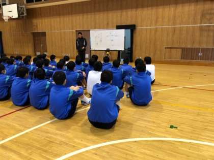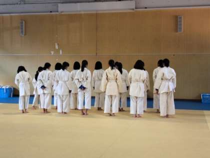 女子は格技室で柔道、男子は体育館でドッジボールをしました。