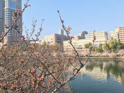 本校に近い西岸側はまさに「咲き誇り」、絶好の見ごろですね。