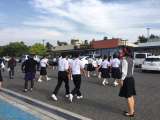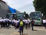 ただいま、本校国道1号線側通用門にバスが到着いたしました。