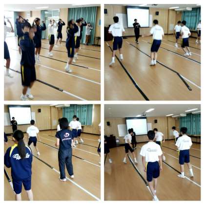 公認アスレチックトレーナーとともに、楽しくリズムに合わせて体を動かしました。リズム感を高めることで、スポーツのパフォーマンスアップとけがの予防につながるそうです。