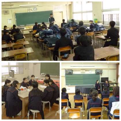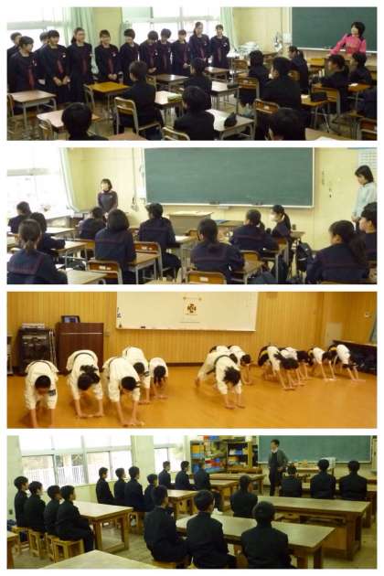 (写真は、文化部(美術部、家庭科部、合唱部)、運動部(バドミントン部、バレーボール部、少林寺拳法部、野球部)です。)