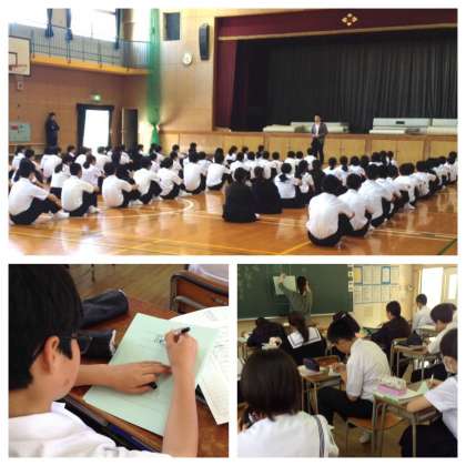 2年生も中間テストまで1週間。朝の集会では学年主任の先生から、中間テストに向けての話とともに、職場体験学習に向けてのお話がありました。