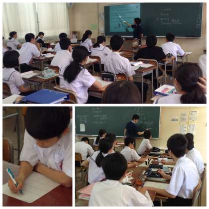 その後の1時間目の授業では、各クラス落ち着いて授業に取り組んでいました。国語では、入り込みの先生に見守られ、これまでに配布されたプリントを整理するファイル作成、2組では数学の習熟度別学習、3組では英語をTT(ティームティーチング)と、各クラス、2人ずつの先生が関わった授業でした。