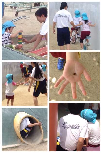 3年生が、家庭科の授業の一環で、校区にある市立幼稚園で保育実習を行いました。園児から「みてっ」、と言われて掌を覗くとてんとう虫。園庭では、園児と中学生が「外遊び」。園児が一輪車に乗る手を引いたり、おにごっこをしたり、砂場で遊んだりとそれぞれに実習をつんでいました。幼稚園の皆様ありがとうございました。