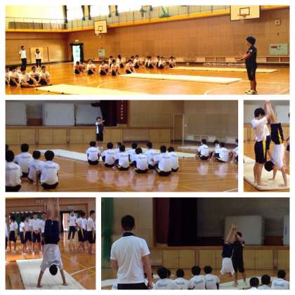 3週間の教育実習も折り返し。来週は、大学から先生をお迎えして研究授業を行います。今日は、その授業に向けて、実習生が3年生のマット運動の授業を行いました。生徒たちは体育の先生と積み上げてきた実績もあり、主体的に授業に参加し、対話をしながら、安全に配慮し、そして、仲間と助け合い、練習を重ねていました。