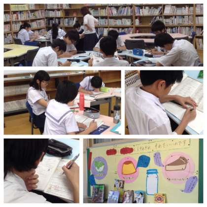 放課後の図書館では、生徒たちが自主的に、テストに向けての学習に取り組んでいます。一人ひとりがマナーを守って、図書館支援員の先生に見守られながら、1年生も、2年生も、3年生も学習している姿がありました。この学習に向かう気持ちが、家庭学習の充実に活きることでしょう。