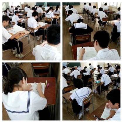 これまで積み重ねてきた学習の成果を発揮できるよう、テスト時間いっぱいがんばっている様子が見られました。来週にはテストが返却されます。見直しをすることと、日々の学習を地道に続けることが大切です。写真は2・3年生です。