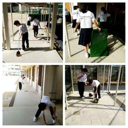 毎週金曜日にしている早朝清掃は、1年生のみ今日に行いました。当番の生徒が少し早く登校して、運動場の面した廊下の清掃を行いました。