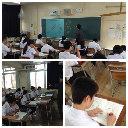 2年生の理科の授業では、「感覚と運動のしくみ」について学習を行っています。プリントには教科書の内容に留まらず、生徒の興味関心を高める内容がたくさん盛り込まれていました。
