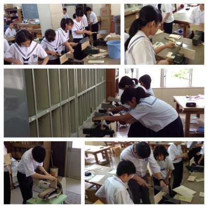1年生が、技術室で木工(ものづくり)として、「思い出ラック」づくりに取り組んでいました。万力に板を挟みノコギリで切れ目を入れていきます。そして、切り口は電動ヤスリで綺麗にしていきます。どんな作品が仕上がるのか。作品の完成が楽しみです。