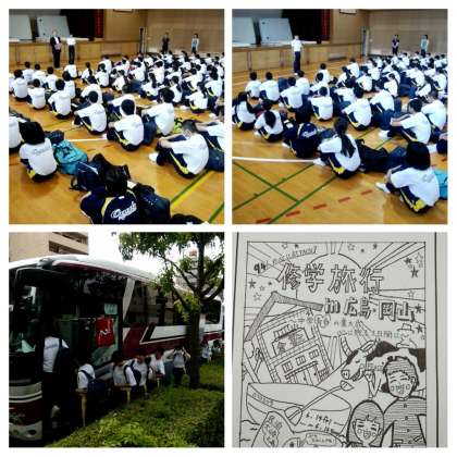 早朝にもかかわらず、時間通りに生徒たちは集まり出発式を行いました。出発式では、校長先生に続いて生徒代表のあいさつがありました。修学旅行に向けてこれまで取組をしてきました。取組を実りあるもの、たくさんの思い出にできるよう、安全に気をつけて3日間の様々な活動をしてほしいと思います。