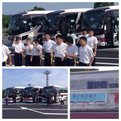 龍野西SAでトイレ休憩をとりました。バス車内では、生徒たちはレク係が編集したCDを聞きながらおしゃべりするなど楽しく過ごしています。