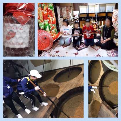 もう1つの班は、島内にある醤油醸造場にて、蔵見学をしています。(写真下段)