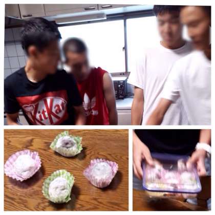 もう1つの班は、山で筍を取ってきた後、苺大福作りをしました。