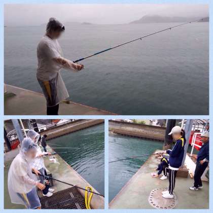 いくつかの班が魚釣りに海に来ていました。生徒たちは民家の方々の手ほどきを受けて、小さなメバルを釣っていました。