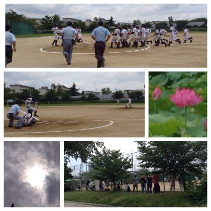 野球部の3年生にとっては、後輩たちと挑む最後の大会。蝉が鳴き、蓮池の花が満開の自然いっぱいの堺市白鷺公園野球場で、たくさんの保護者をはじめ関係者の方々の声援を受けて、プレーボール。選手たちの一投一打に声援が湧き起こり、試合が進みました。