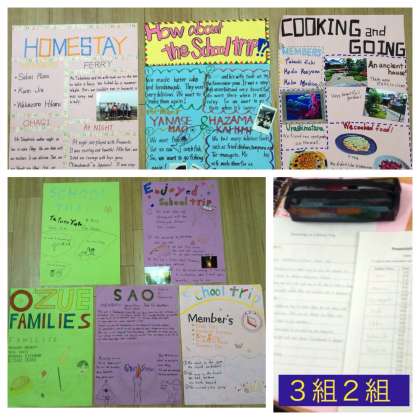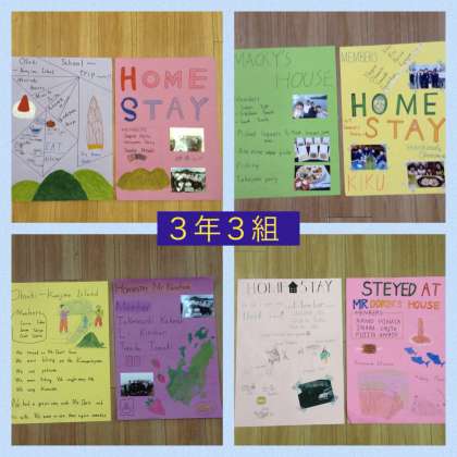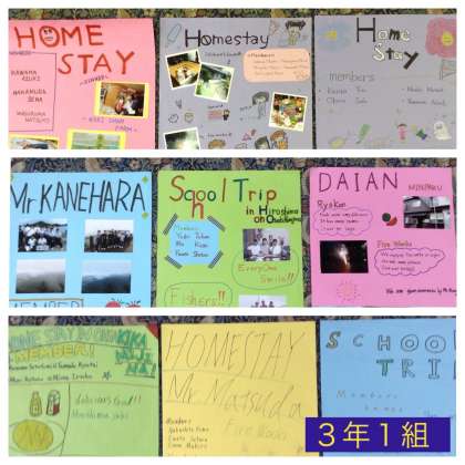 英語の授業の1学期の締めくくりは、修学旅行での民泊体験のプレゼンテーション。ポスターを使い、時には、CーNETやクラスメートに質問をしたりしながら発表しました。