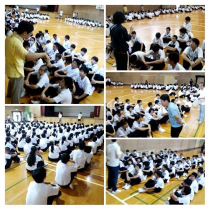 6時間目に全校生徒が体育館に集まり、地区奉仕活動の全体説明会をしました。