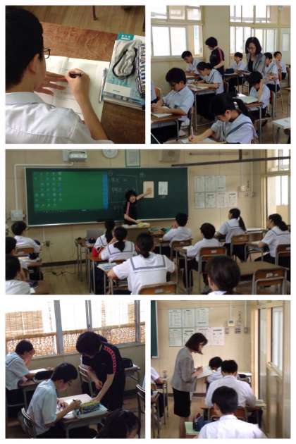 本日は、教育委員会より学力向上支援チームの先生に1年生(写真上)と2年生(写真下)の授業を参観していただき、指導助言をいただきました。