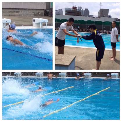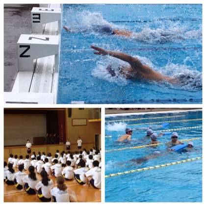 天候に恵まれ、2年生の水泳大会が実施されました。優勝は2組。講評では、体育の先生から「一人ひとりがしっかりと泳ぎ、入水できない人は係の仕事を一生懸命していました。また、しっかりと応援もできていて、アナウンスや話を聞くときは集中して静かに聞くなど、当たり前のことを当たり前にできていることが素晴らしかったです。1年生にとっても、とても素敵なお手本となる先輩の姿を見せてくれました。」との旨の内容に、生徒たちは満足げな表情でした。勝ち負けはつきましたが、1学期の締めくくりにふさわしい行事になりました。