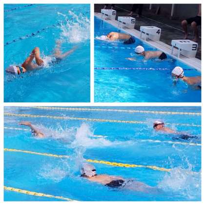明け方の雷も雷雲とともに遠ざかり、太陽の光が燦々と注ぐなく、1年生の水泳大会が実施されました。