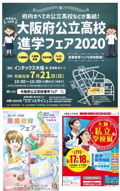 いくつもの高校が一堂に集まる合同説明会は、大きなチャンスです。21日(日)にはG20の会場にもなったインテックス大阪で「大阪府公立高校進学フェア2020」が、8月には私立高校等の合同説明会が開催されます。