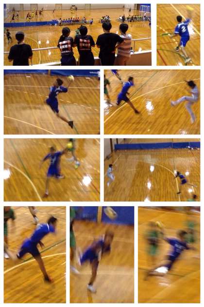ハンドボール部は、男女とも堺市立家原大池体育館で大会に出場。きれいに整備された公園の中で池の側に立地する素晴らしい会場。たくさんの保護者や仲間の声援を受け、まずは男子の1回戦。前半は慎重なスタートでしたが、じりじりと点差を開けて前半を終了。