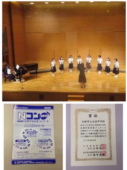 本選出場こそ逃しましたが、「奨励賞」をいただきました。また、表彰式後の審査員の先生からの講評では「リズム感がいいです。課題は声量。」とパワーをもらえる言葉をいただきました。さらに、課題曲の伴奏は、大人でも難しく、ミスタッチが気になる学校がある中、堂々と伴奏した本校の生徒に直接、お褒めの言葉もいただきました。暑い一日が思い出に残る一日になりました。(合唱の写真は、相愛高校のHPより転載させていただきました。)