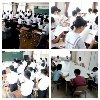 今日の音楽の授業は、研究授業として行いました。OJT(若手教員育成支援)事業として、大阪市教育センターの教育指導員から指導を受けました。