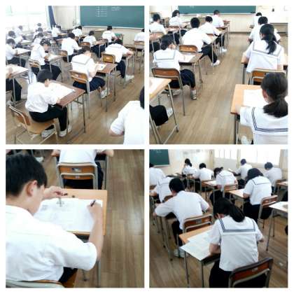 3年生は実力テストを行いました。真剣にテスト問題に向き合っていました。実力テストは、卒業後の進路を考える上で学力面での資料になります。