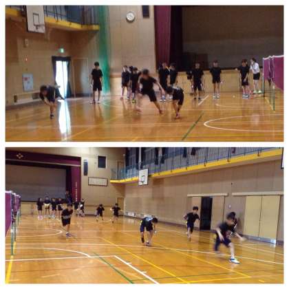 3連休の初日。学校では様々な部活動が行われています。バドミントン部は、ウオーミングアップで、ステップなどの基礎練習に黙々と取り組んでいます。安定した足腰、下半身があってこそのラケットを使ったスポーツ。来週は、男子が団体戦で大阪市秋季大会予選に挑みます。