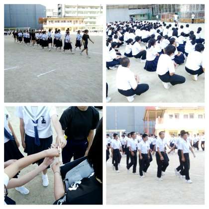 放課後、体育大会の部活動行進の練習をしました。整列後、当日の流れについて説明し、部活動対抗リレーのくじ引きをしました。当日は、ユニフォームなどを着て行進し、リレーを行います。