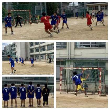 大阪市秋季総体の予選が行われました。男子の1試合目は青のユニフォームで登場。力を合わせてゴールを次々に決めて勝利することができました。