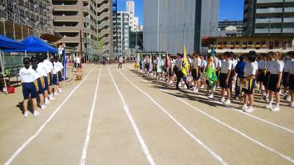 あさっての体育大会に向けて、今日は予行練習です。入場行進・開会式、競技を当日と同じように進めて、出場競技や係仕事の予行をしています。この後、各競技を少しずつ行って、給食までに終了します。