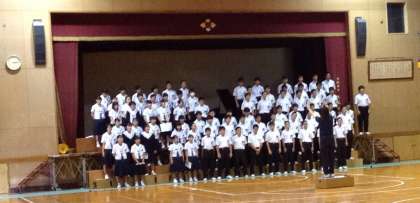 3年生が文化祭に向けて、体育館で全員合唱の練習に取り組みました。今年度の文化祭は、10月25日(金)です。